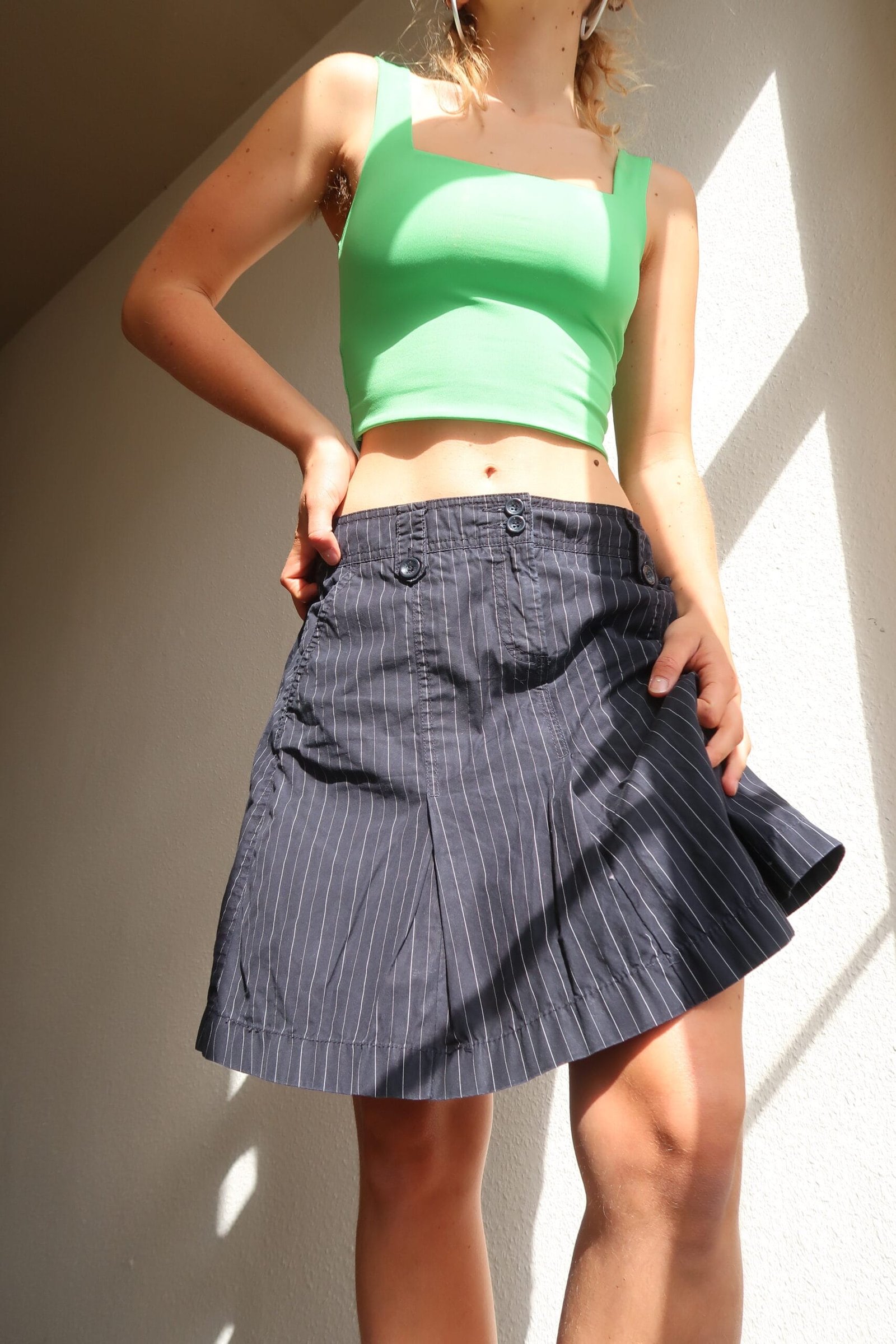 vintage pinstriped cargoskirt. The perfect 90s staplepiece for everyday wear to put together outfits ranging from grungy to classy. very comfortsble to wear and perfect for any season. love to wear it lowwaist but looks cute sinched at the waist aswell. as good as new and in great condition